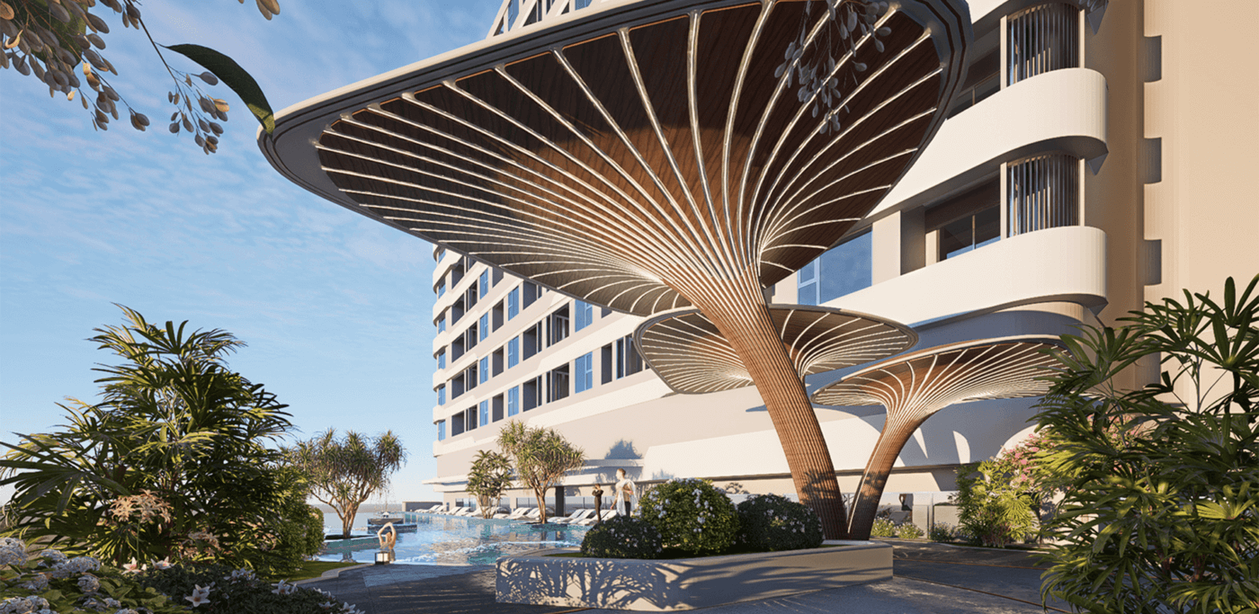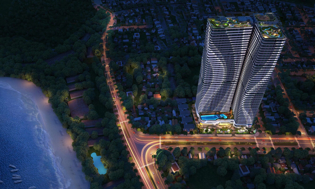 - Tòa phức hợp cao 46 tầng là một trong những tòa nhà cao nhất Quy Nhơn khi hoàn thành với lối kiến trúc được lấy cảm hứng từ những cơn sóng biển mềm mại và uyển chuyển.